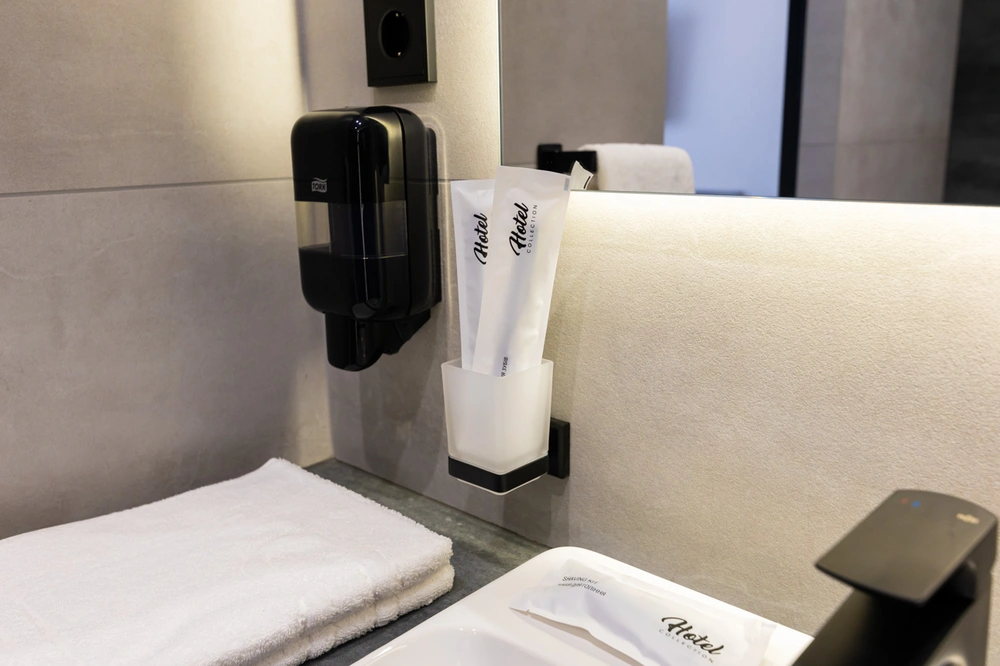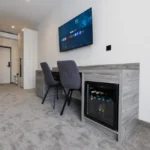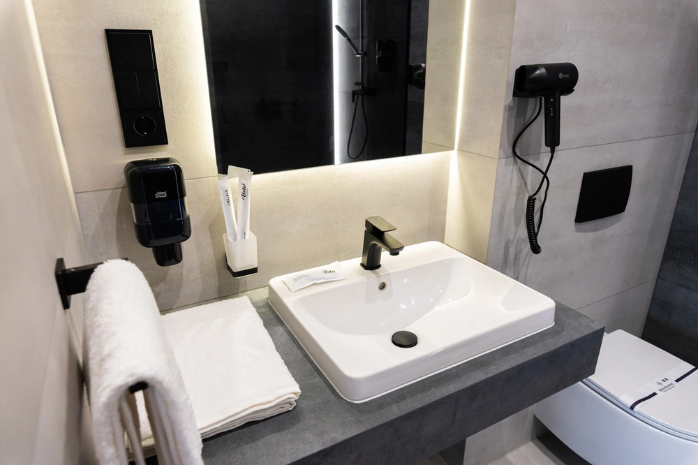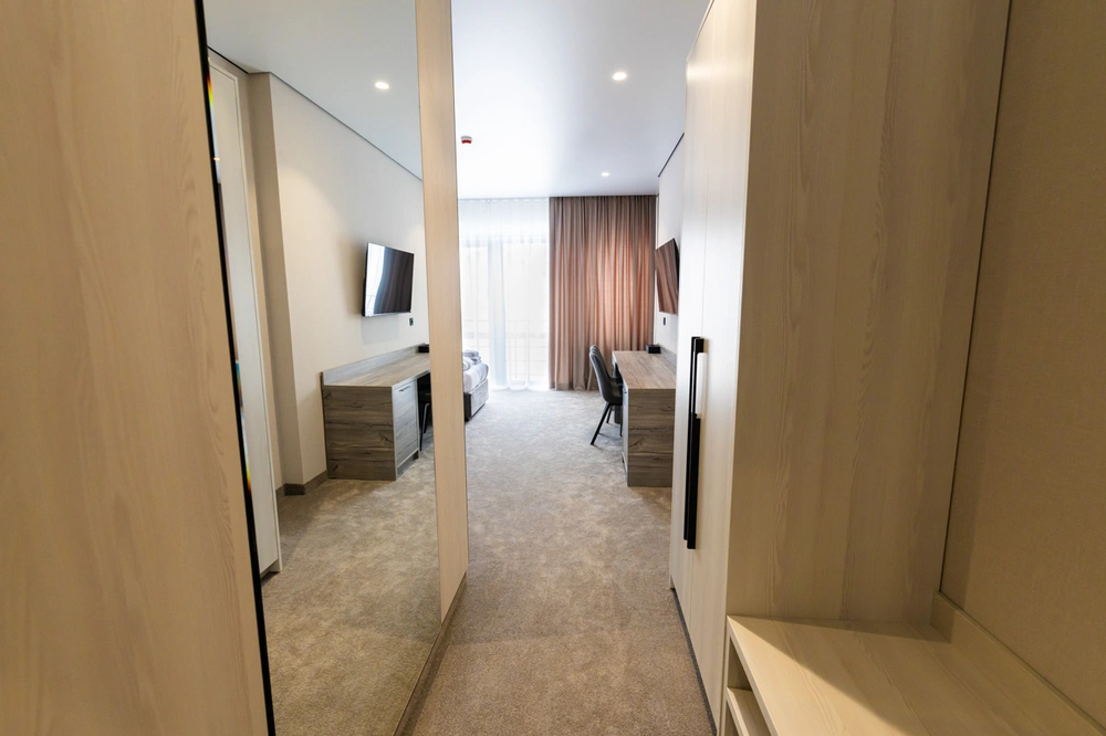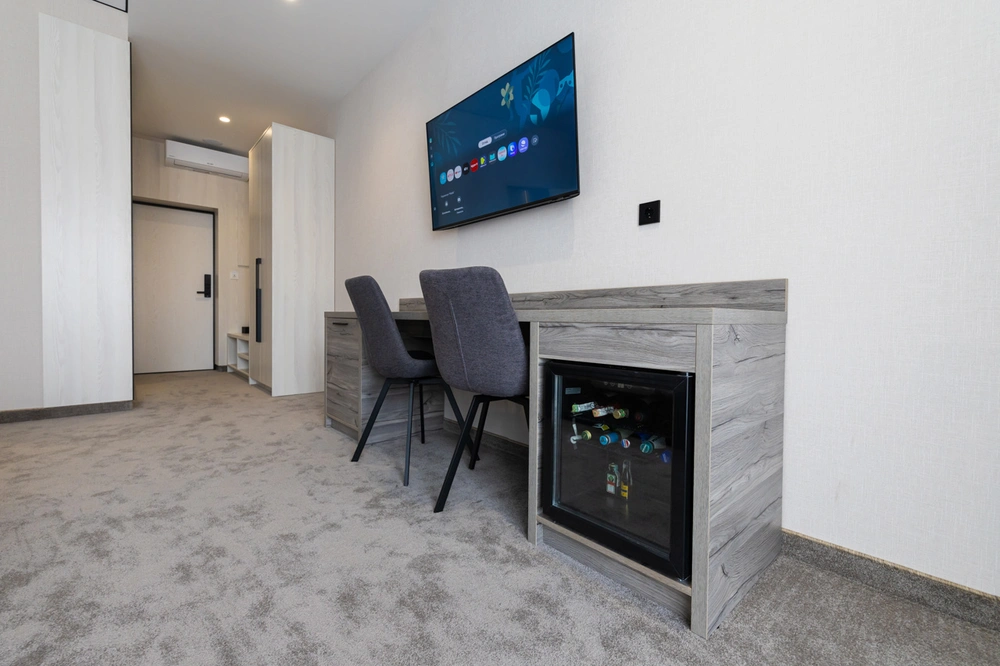 - Зручності: Wi-Fi, Балкон, Душ, Кондиціонер, Косметичні засоби, Міні-бар, Парковка, Робочий стіл, Телевізор, Цілодобова рецепція, Шафа