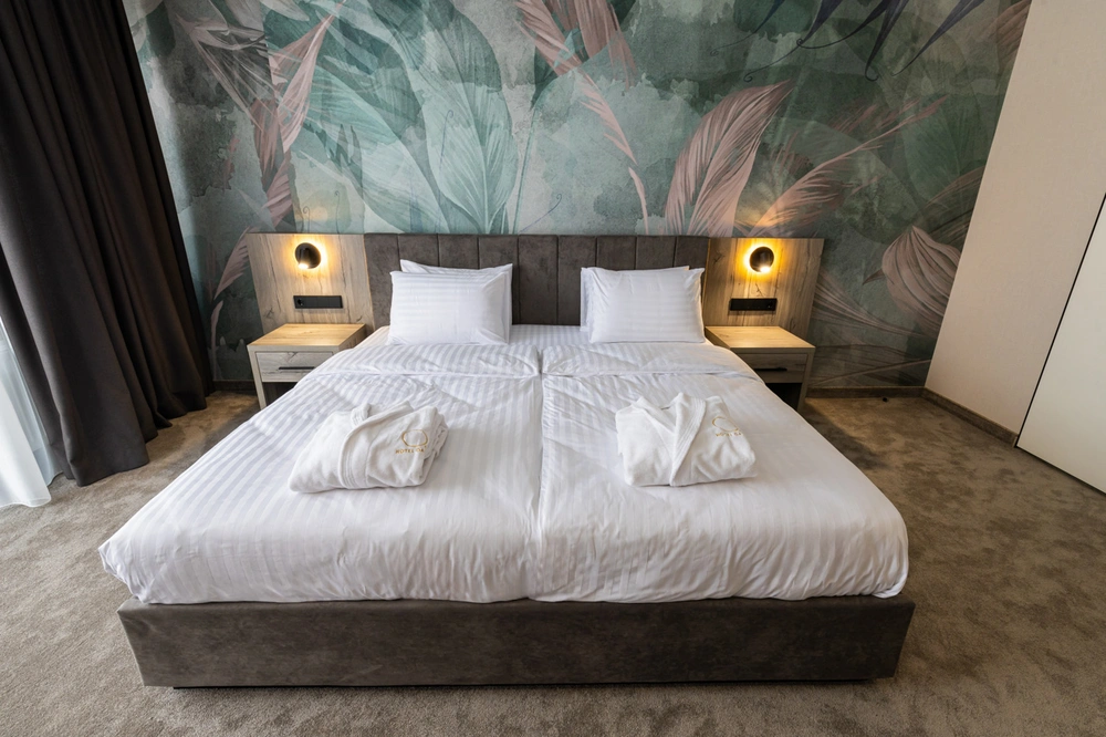 Сучасний номер з просторим ліжком King-size — ідеальне рішення для комфортного відпочинку, романтичних та особистих візитів.