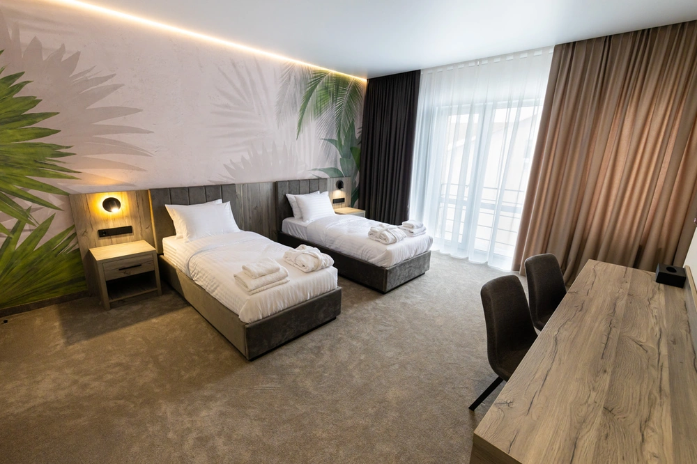 Комфортний номер з двома окремими ліжками — ідеальне рішення для друзів, колег або ділових поїздок.